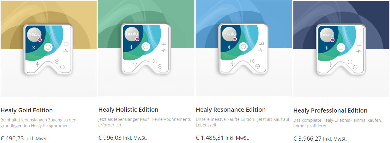 Wähle aus den verschiedenen Healy-Editionen die für Dich passende Version aus: